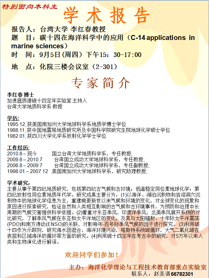 李紅春教授學術報告:碳十四在海洋科學中的應用