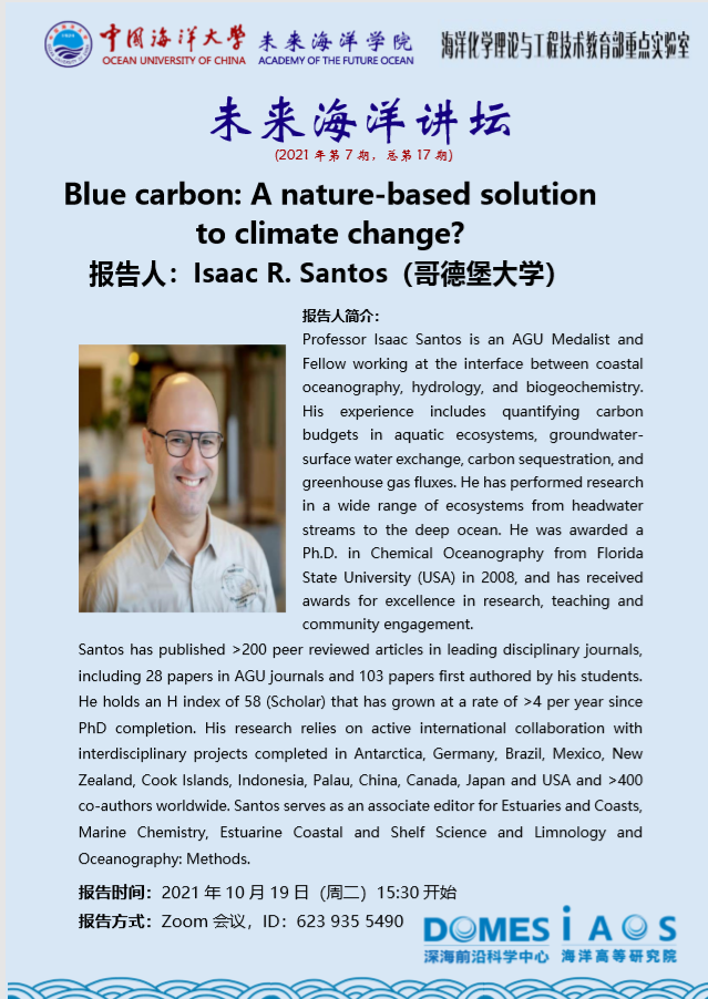 未來海洋講壇第17講(2021年第7期)-Isaac R. Santos:Blue carbon: A nature-based solution to climate change?