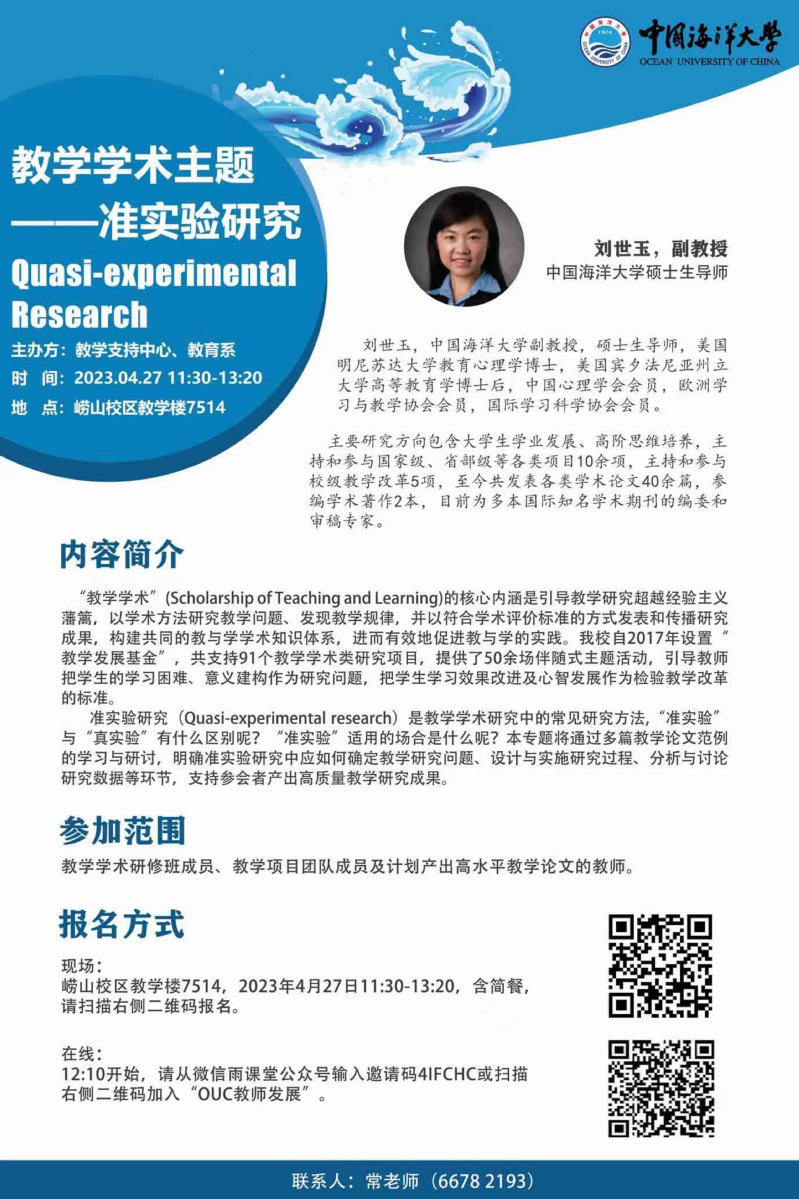 教師發展講壇2023年第10講-劉世玉:準實驗研究