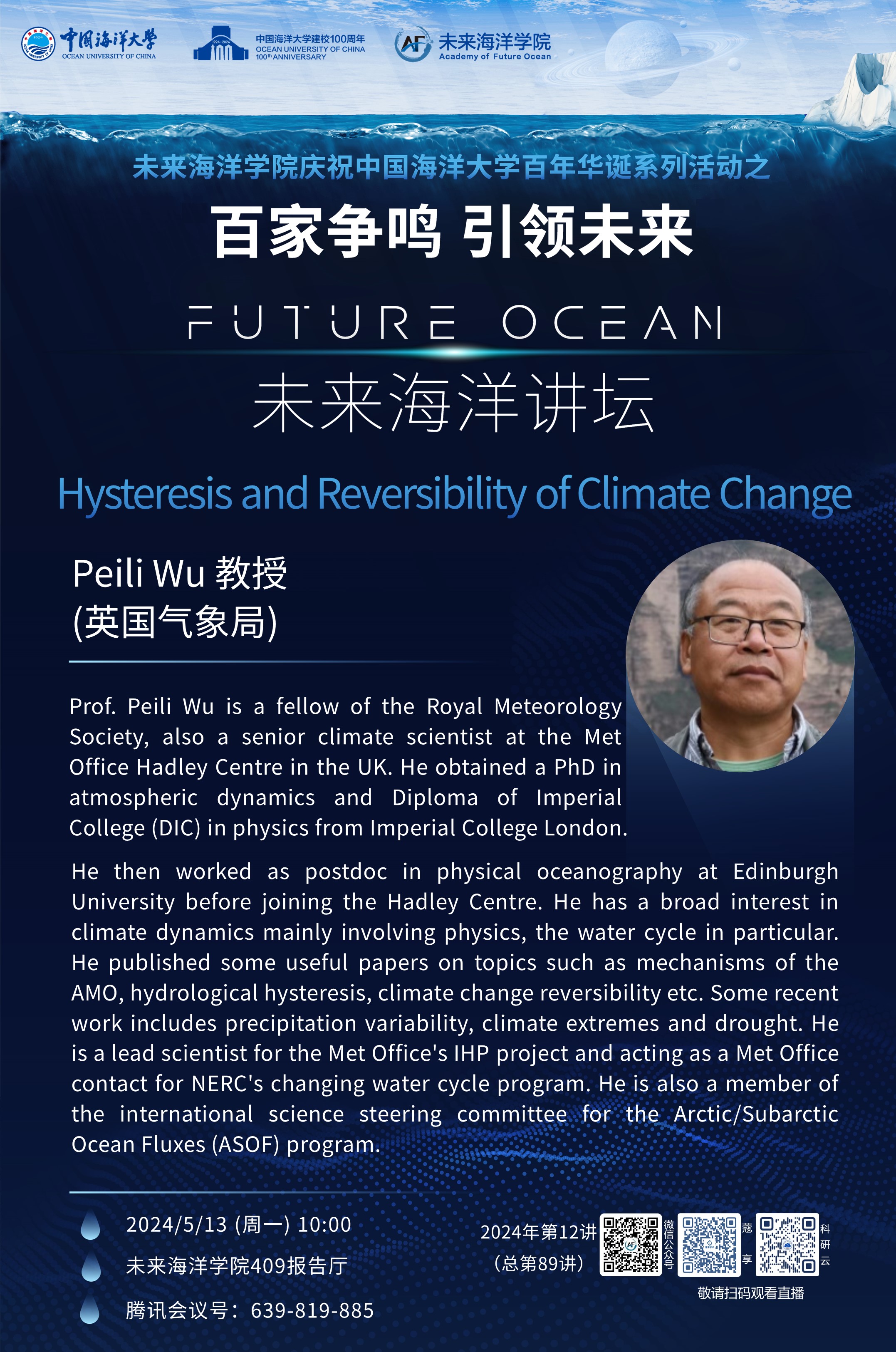 百家爭鳴 引領未來丨未來海洋講壇第89講 (2024年第12講) -Peili Wu: Hysteresis and Reversibility of Climate Change