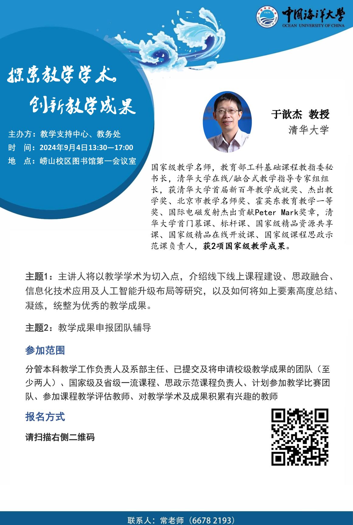 教師發展講壇2024年第15講-于歆杰:探索教學學術,創新教學成果
