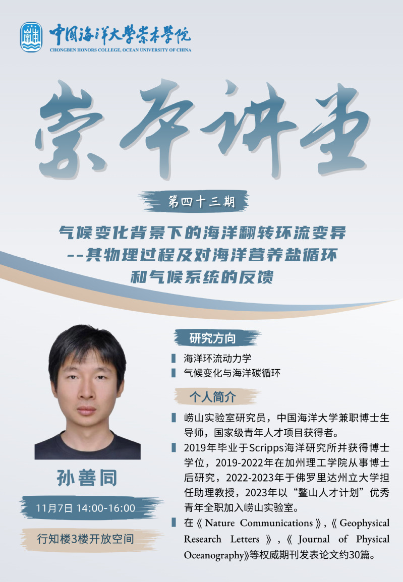 崇本講堂第四十三講-孫善同:氣候變化背景下的海洋翻轉(zhuǎn)環(huán)流變異——其物理過程及對海洋營養(yǎng)鹽循環(huán)和氣候系統(tǒng)的反饋