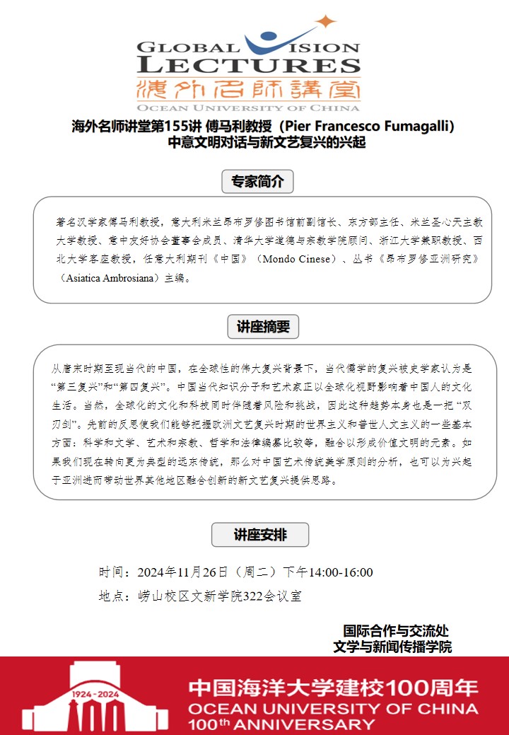 海外名師講堂第一百五十五講-傅馬利(Pier Francesco Fumagalli):中意文明對話與新文藝復興的興起