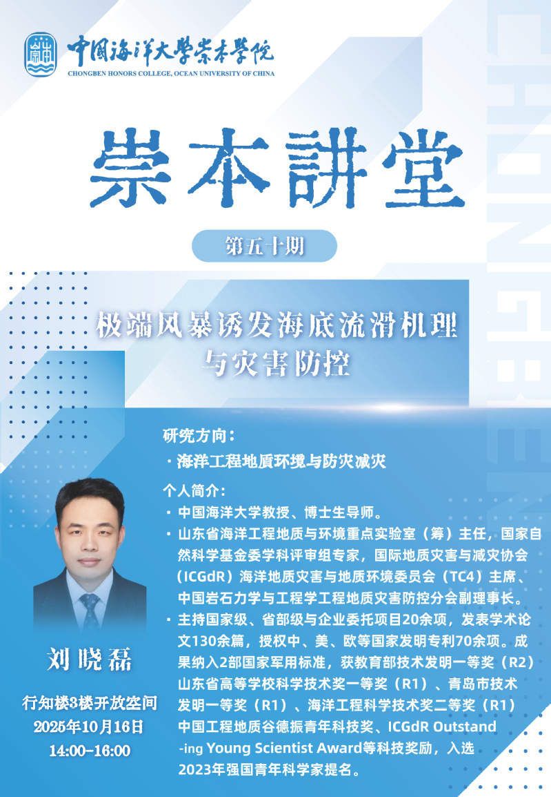 崇本講堂第五十講-劉曉磊:極端風暴誘發海底流滑機理與災害防控