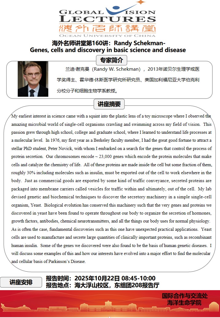 海外名師講堂第一百六十講-Randy Schekman:Genes, cells and discovery in basic science and disease
