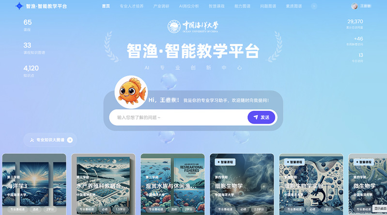 • 近日,教育部完成第三批“人工智能+高等教育”典型應用場景案例遴選,中國海洋大學“深藍智教:基于‘智漁’平臺的水產教育圖譜自適應學習體系構建與實踐”獲批,并在國家高等教育智慧教育平臺面向全國宣傳推廣