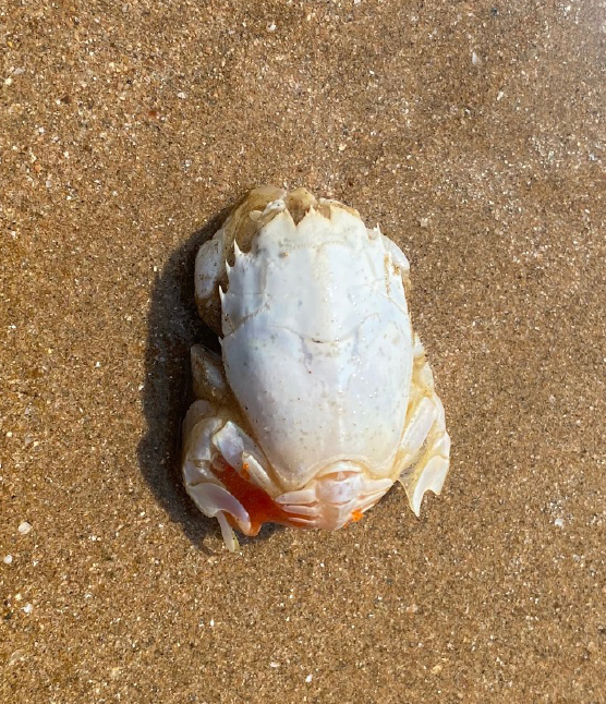 •   解放眉足蟹(Blepharipoda liberate) 是一種長相并不出眾的小型海洋節肢動物,也是一種珍貴的海洋生物。又叫海蟬蟹、海節令,因為它的外形與陸地上的幼蟬很相似,所以也俗稱“海知了”。為多年生、埋棲性、生長緩慢的海洋異尾類生物,常見于山東沿海地區,在我國臺灣地區也有分布。